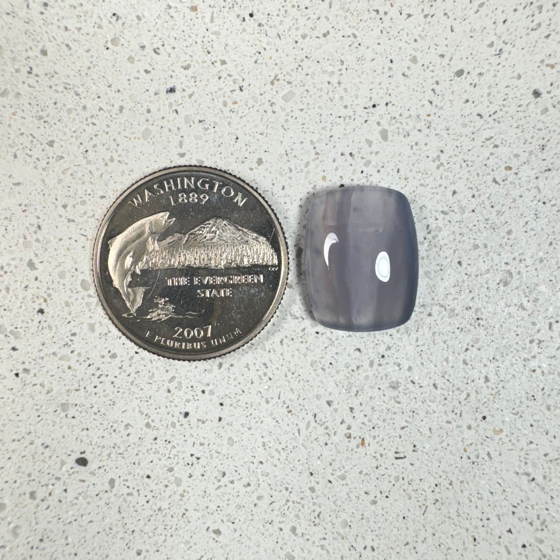 Beautiful natural, blue agate with lavender ribbon-like bands. Polished on both sides.