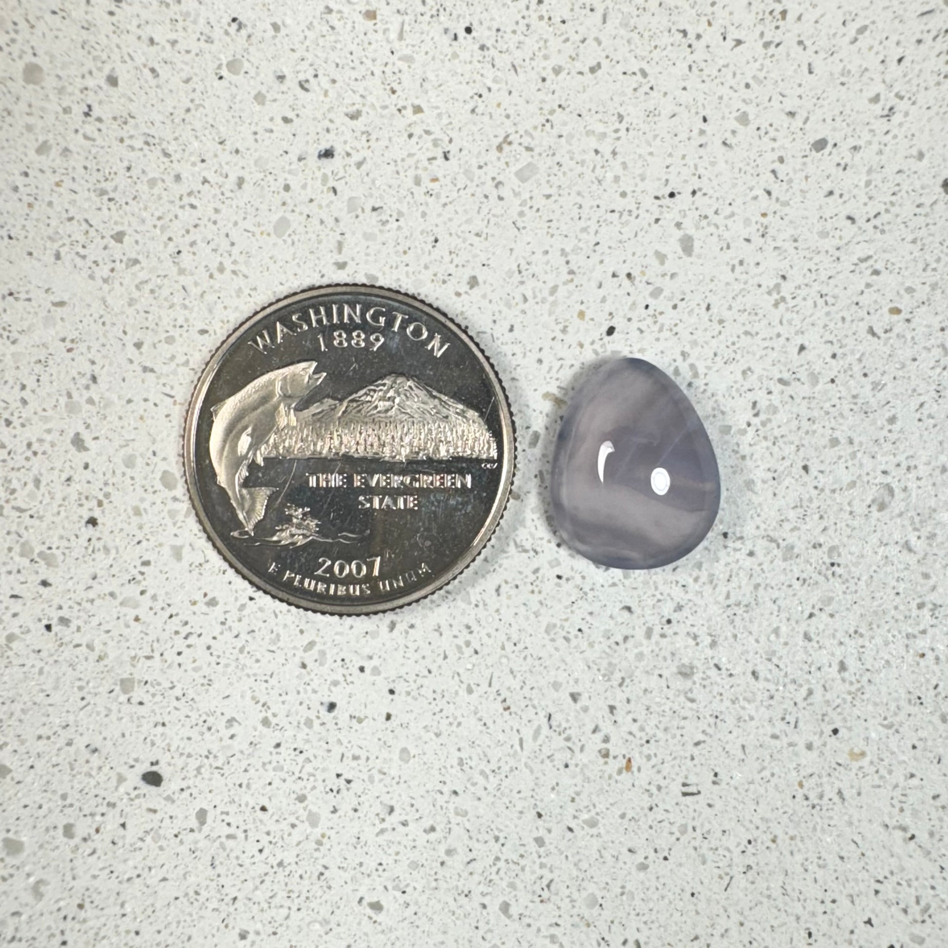 Beautiful natural, blue agate with lavender ribbon-like bands. Polished on both sides.